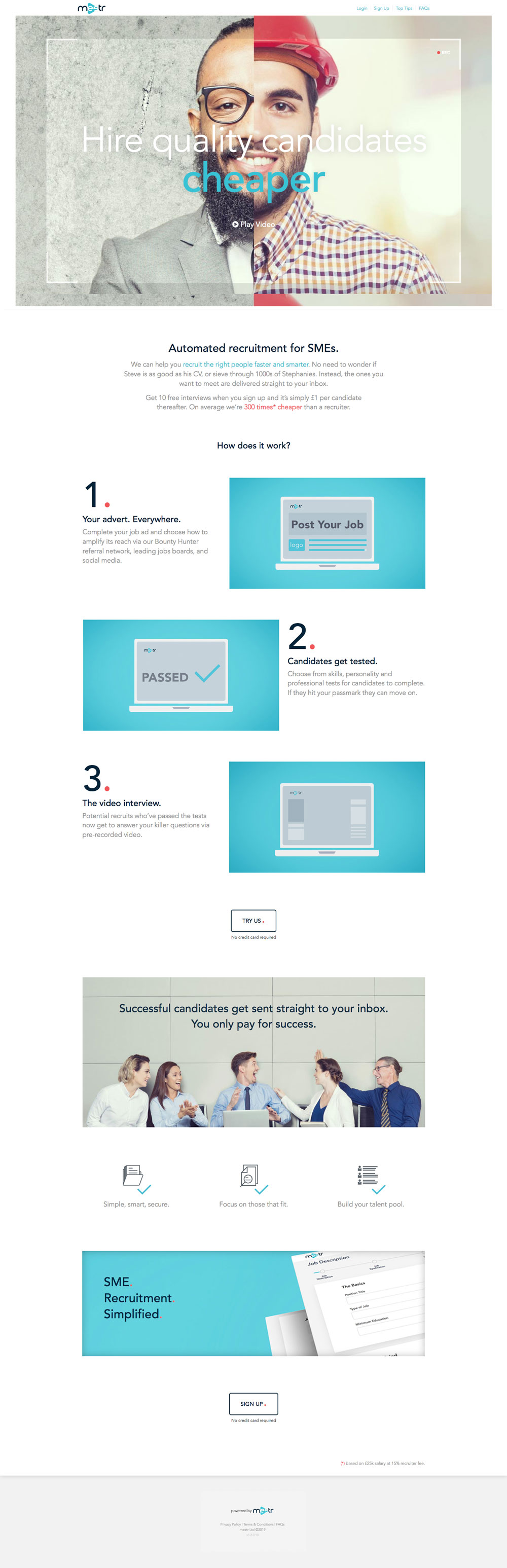The meetr project was a spinout from a successful video interviewing company. They wanted a ‘business in a box version’ that could standalone and service any size or sector so meetr was born. We delivered everything you can see and touch from brand through to code. Give it a try at meetr.co.